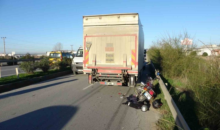 Antalya’nın Manavgat ilçesinde, kamyona arkadan çarpan motosikletteki 2 kişi yaralandı.
