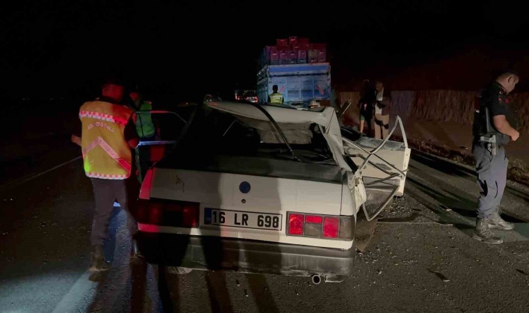 Bursa’da kontrolden çıkan Tofaş marka otomobil kamyona çarptı. Kazada 3 kişi ağır yaralanırken, çatısı uçan otomobil adeta üstü açık araca döndü.