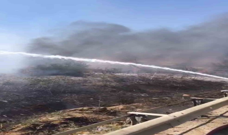 Mersin’in Tarsus ilçesinde otoyolda meyve yüklü kamyonda çıkan yangın, ağaçlık alana sıçradı.
