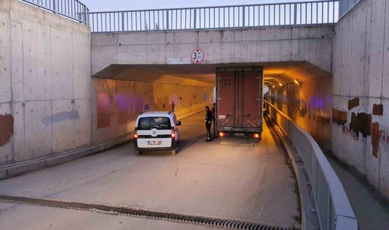 Çorum’un Sungurlu ilçesinde, seyir halindeki bir kamyonet alt geçide sıkıştı.
