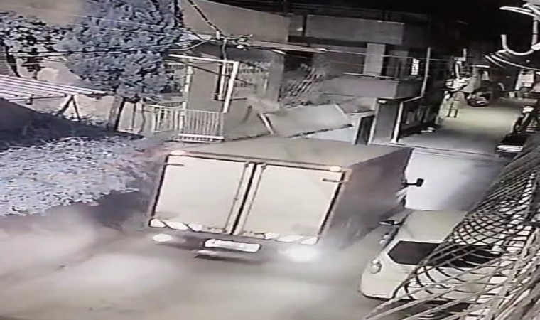 Çarpan sürücü ile anlaşan Öztep, şikayetçi olmazken kamyonetin balkona çarpma anı ise saniye saniye görüntülendi.