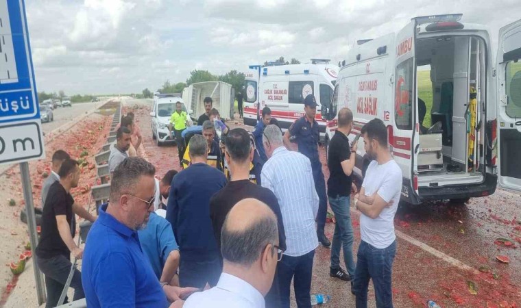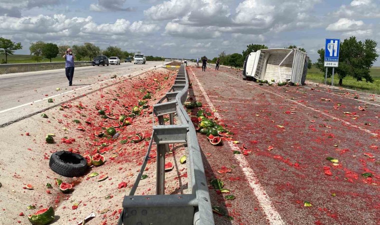 Öte yandan, devrilen kamyonetteki karpuzlar yol saçıldı. Kırmızıya boyanan yol, yapılan temizlik çalışmaları sonrası tekrar trafiğe açıldı.