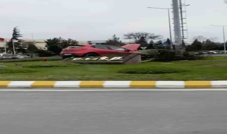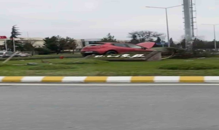 Tekirdağ’ın Kapaklı ilçesinde kamyonet ile çarpışan otomobil dönel kavşağa uçtu. Kazada sürücü yaralandı.