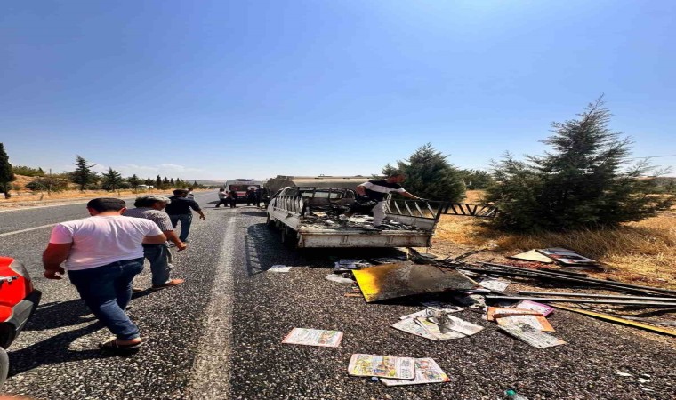 Adıyaman’da seyir halindeki kamyonet kasasındaki kağıtlar alev alarak yandı.