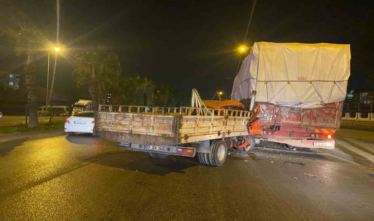 Antalya’nın Serik ilçesinde park halindeki kamyona kamyonet çarptı. Kazada yaralanan sürücüye ilk müdahaleyi kamyon sürücüsü yaptı.