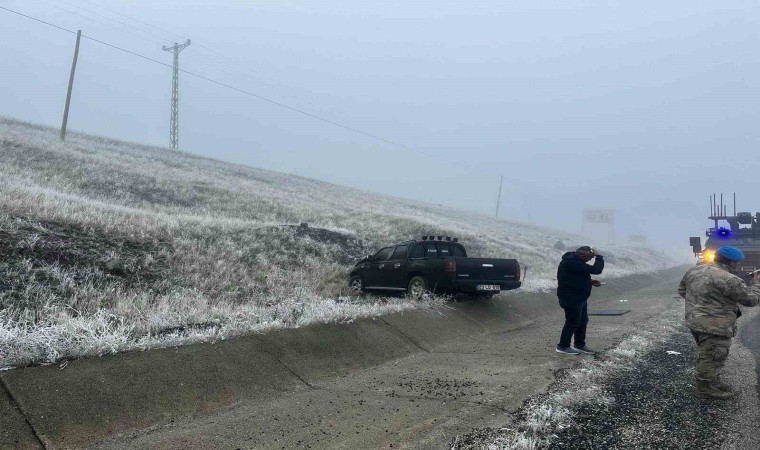 Elazığ’da buzlanma nedeniyle kontrolden çıkan kamyonet şarampole kaydı. Kazada 2 kişi yaralandı.