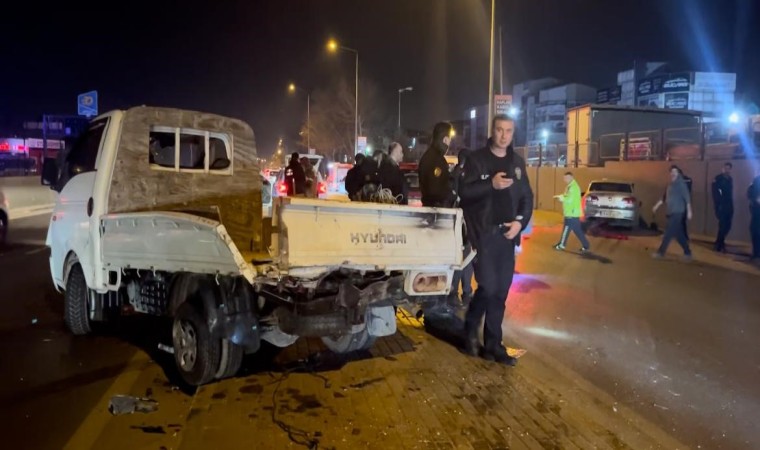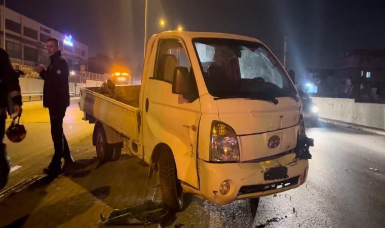 Bursa’da aynı istikamet üzerinde seyir halinde olan otomobil, kamyonete çarptı. Çarpmanın etkisiyle savrulan araç, duvara çarparak durabildi.