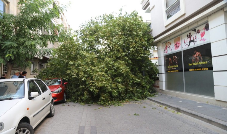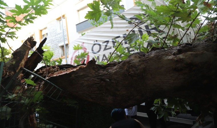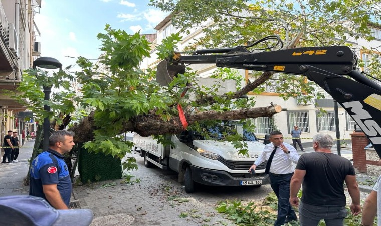 Manisa’nın Akhisar ilçesinde tarihi çınar ağacı kamyonetin çarpması sonucu devrildi.