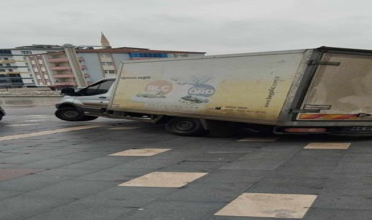 Elazığ’da Beypiliç’e ait olduğu öğrenilen kamyonet kaldırıma çıktı. Kaldırımın çökmesi nedeni ile aracın bir bölümü göçüğün içine girdi.