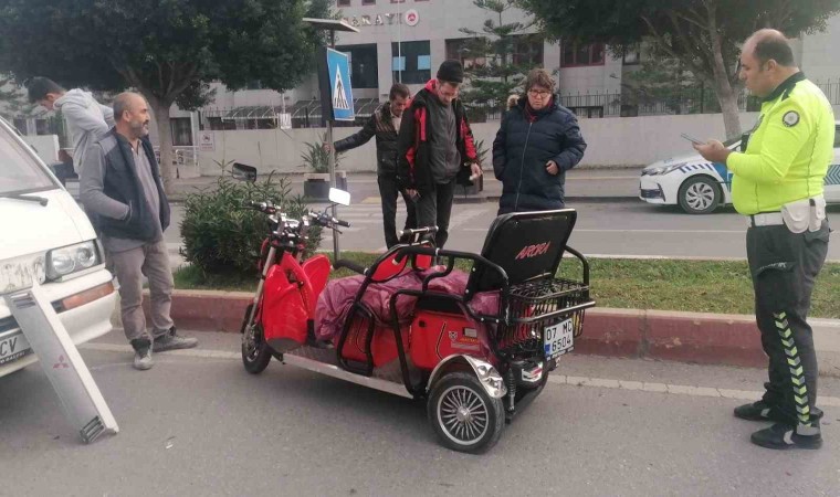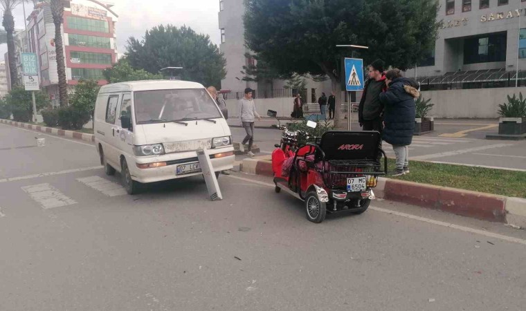 Kaza; Manavgat Adliyesi önünde meydana geldi. Alınan bilgiye göre; Hasan Fehmi Boztepe Caddesi istikametine seyir halindeki Ahmet Şahbaz’ın kullandığı 07 LCV 87 plakalı kapalı kasa kamyonet, U dönüşü yapan Almanya vatandaşı Chris Kajetan’ın kullandığı 07 MC 6504 plakalı 3 tekerlekli motorlu bisiklete çarptı. Elektrikli bisiklet çarpmanın şiddetiyle yola savrulurken, bisiklet sürücüsü ve bisiklette yolcu olarak bulunan kadın olay yerine gelen sağlık ekibinin yaptığı kontrolün ardından hastaneye gitmeyi kabul etmedi.