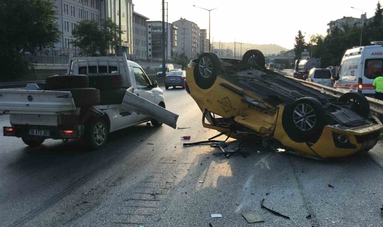 Kaza, İzmit Yenidoğan Mahallesi D-100 kara yolu Ankara istikametinde meydana geldi. Edinilen bilgiye göre, Ş.M.M. idaresindeki 41 T 0028 plakalı ticari taksi, sürücünün hakimiyeti kaybetmesiyle M.Ö. idaresindeki 16 ATS 801 plakalı Fiat marka kamyonete çarpıp savruldu. Taksi, çarpışmanın etkisiyle takla atarak ters durabildi. Çevredeki vatandaşların yardımıyla taksinin sürücüsü Ş.M.M. taksiden çıkarıldı. Durumun 112 Acil Çağrı Merkezi’ne bildirilmesiyle bölgeye sağlık ve polis ekipleri sevk edildi. Yaralı taksi sürücüsü, ambulansta yapılan ilk müdahalenin ardından Seka Devlet Hastanesi’ne kaldırıldı. Kamyonet sürücüsü ise kazayı yara almadan atlattı. Kazanın yaşandığı bölgede trafik yoğunluğu oluşurken trafik polisleri, güvenli geçişleri sağlamak adına yolu kontrollü olarak tek şeritten verdi. Kazalı araçların çekilmesinin ardından trafik normal seyrine döndü.
