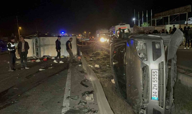 Kaza, D-100 karayolu Altınpınar mevkiinde meydana geldi. Alınan bilgilere göre, Şandan S. idaresindeki 34 HZ 5555 plakalı Ford marka otomobile aynı istikametten giden Vasip Ö. idaresindeki 81 ADL 159 plakalı kamyonet çarptı. Çarpışmanın etkisi ile otomobil bankete çıkıp takla atarken, kamyonet ise yol üzerinde devrildi. Kazayı görenlerin ihbarı ile bölgeye çok sayıda sağlık, polis, itfaiye ve jandarma ekipleri sevk edildi. Sıkışan yaralılar itfaiye ekiplerince çıkarılarak sağlık ekiplerine teslim edilirken, kazada yaralanan kamyonet sürücüsü V.Ö.’nün kanlar içerisindeyken telefonla yakınlarını araması dikkat çekti.