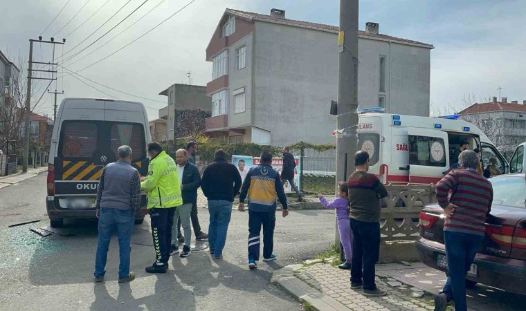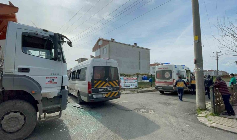 Tekirdağ’ın Ergene ilçesinde kamyonla çarpışan okul servis minibüsünde iki öğrenci yaralandı. Kaza anı kameraya yansıdı.