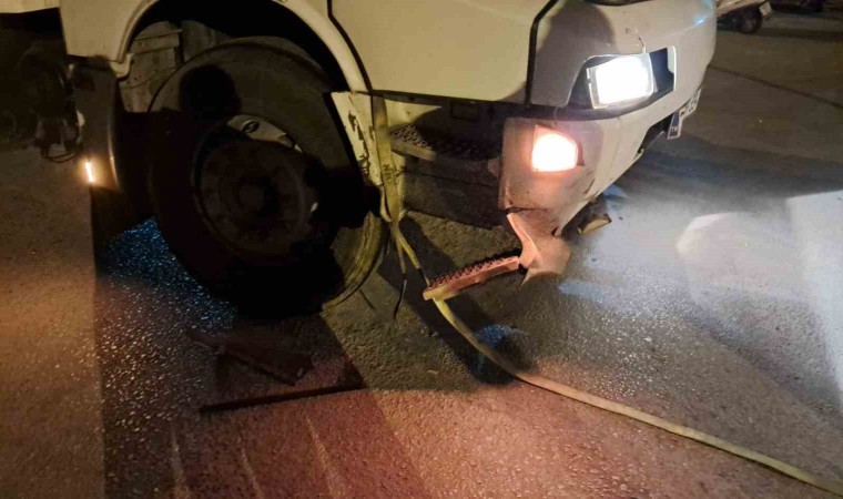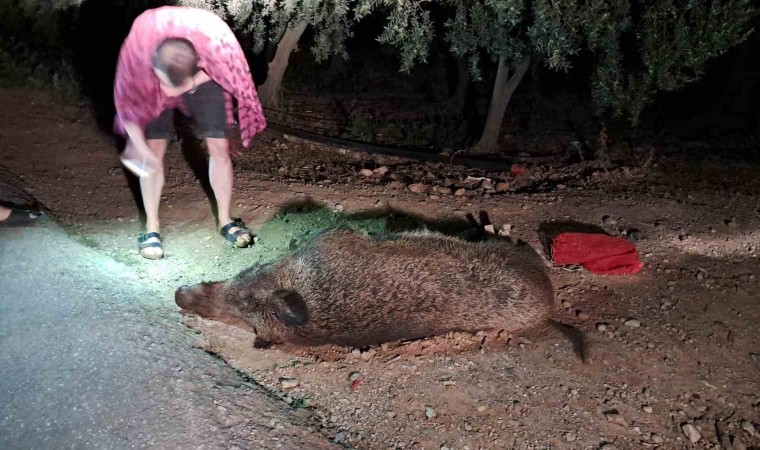 Bursa’nın İznik ilçesinde yola aniden fırlayan yaklaşık 350 kiloluk domuz, bir kamyonun çarpması sonucu telef oldu.
