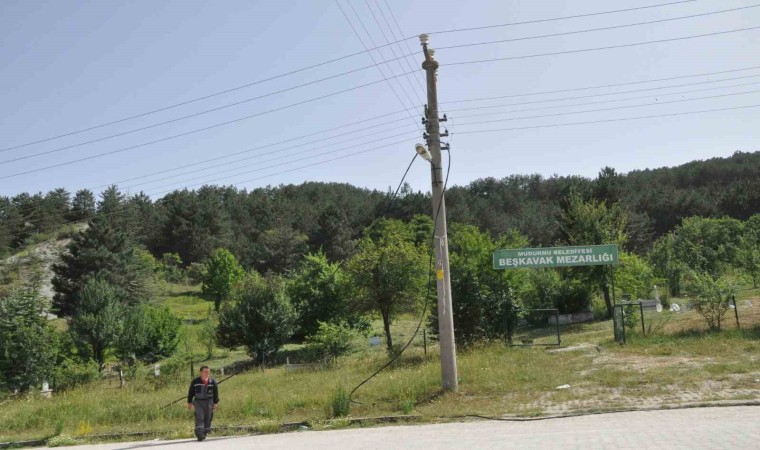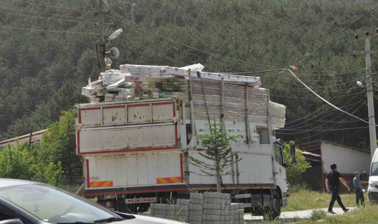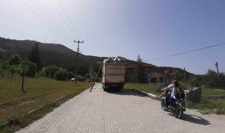 Bolu’nun Mudurnu ilçesinde seyir halinde olan kamyonun taşıdığı malzemeler elektrik kablolarına takıldı. Olayı fark etmeyen sürücünün yoluna devam etmesiyle elektrik direği yerinden söküldü. Kopan kablolar ise yeşil alanda yangın çıkmasına sebep oldu.