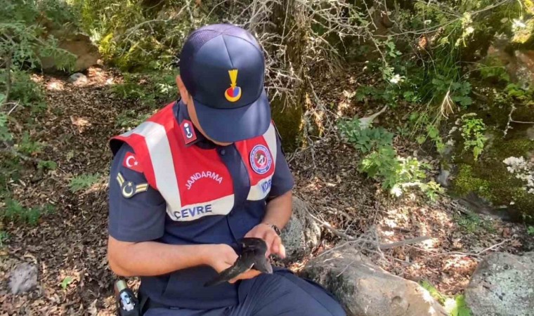 Aksaray’da ormanlık alanda jandarma ekiplerince yaralı olarak bulunan ebabil kuşu tedavi altına alındı.