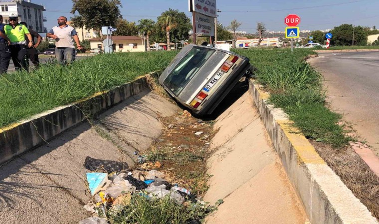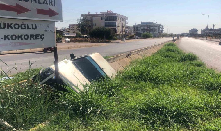 Antalya’da sürücünün direksiyon hakimiyetini kaybettiği araç, yol ortasında bulunan su kanalına düştü. Kazanın ardından yan devrilen araçtan kendi imkanlarıyla çıkan sürücü kaldırım taşına oturup, "Şimdi çekici arkadaşımız gelecek. O benden daha geveze. Kameraları görünce şov yapar" dedi.