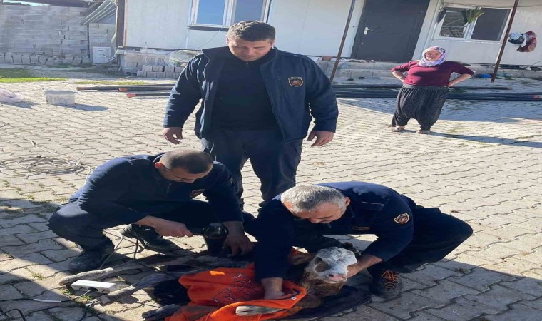 Olay, Antakya ilçesi Gökçegöz Mahallesi’nde yaşandı. Mahallede hayvancılık yapan Kadir Karakuş, 4 buzağını otlamaları için bahçesine bıraktı. Bir süre sonra konrol etitğinde Karakuş, buzağılardan birinin olmadığını fark etti. Karakuş, kanalizasyondan gelen sesi duyunca buzağının kanalizasyon borusu içiresinde sıkıştığını gördü. Buzağıyı kendi imkanlarıyla kurtaramayan Karakuş, durumu 112 Acil Çağrı Merkezi’ne bildirildi. İhbar üzerine kısa sürede bölgeye gelen itfaiye ekipleri, buzağıyı kurtarmak için çalışma başlattı. Ekiplerin beton zemini kırmasıyla 60 metrelik boru içerisinde sıkışan buzağı kurtarıldı. Buzağının kurtarılma anı ise cep telefonu kamerasına yansıdı.
