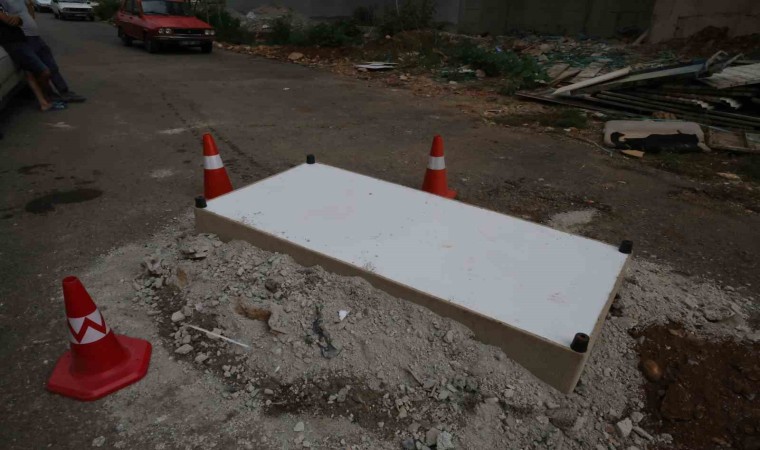 Adana’nın Kozan ilçesinde mahalle sakinleri kanalizasyondan gelen kokuya bir türlü önlem alınmayınca rögarı baza ile kapatıp, kokuyu önlemeye çalıştı.