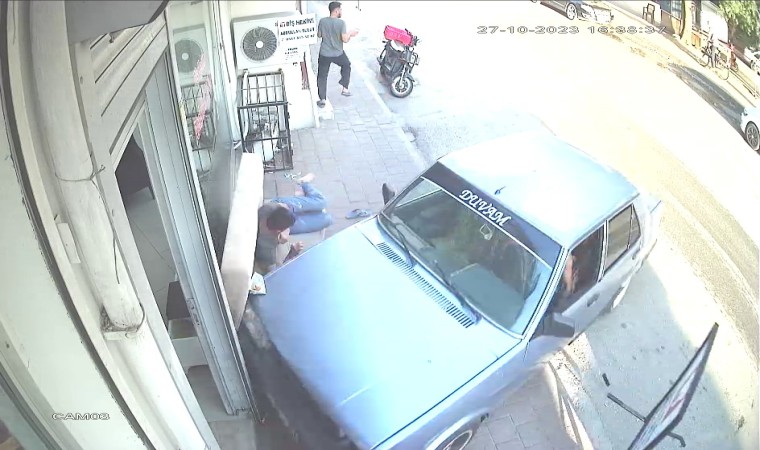 Adana’da bir kişiye iş yerinin önündeki kanepede uyuduğu sırada otomobil çarptı. O anlar güvenlik kamerasına saniye saniye yansıdı.