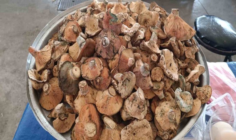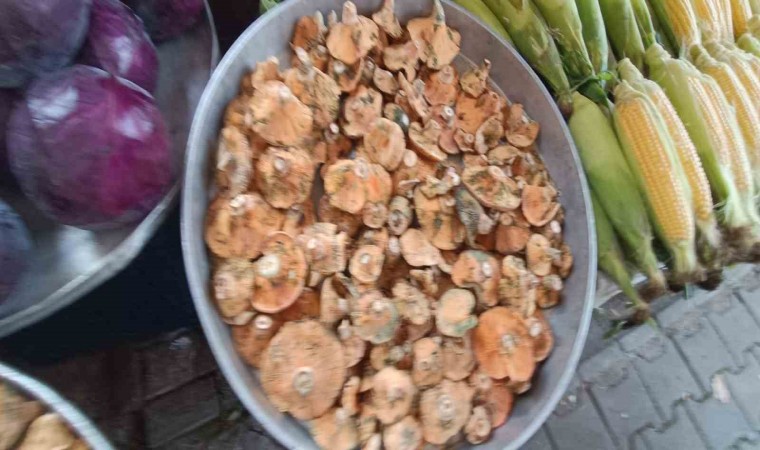 Bilimsel adı ’Lactarius salmonicolor’ olan kanlıca mantarı Karabük’te kilosu 200 TL’den pazardaki yerini aldı.