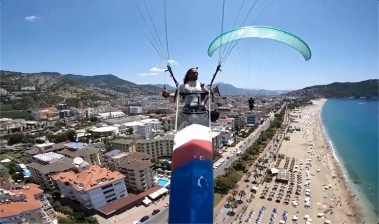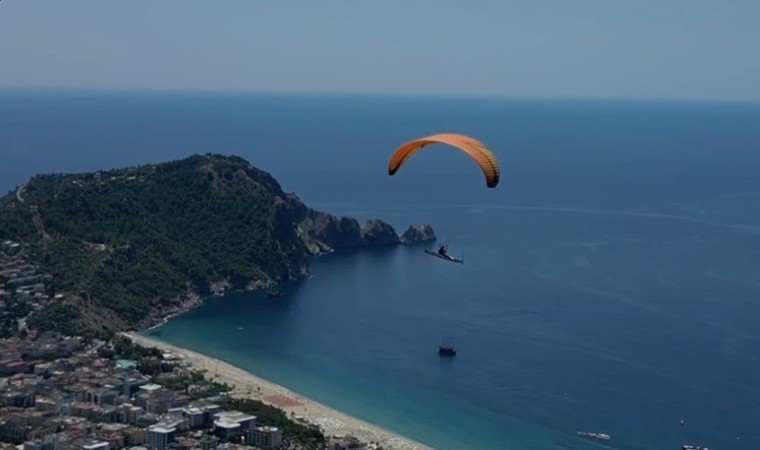 Paraşütüne bağladığı kano ile yaklaşık 800 metre yükseklikteki Yassıtepe’den Kleopatra Plajı’na doğru atlayan Kaval, denize inerek kanoyla kürek çekti. Alanya Kalesi’ne ulaşarak Fosforlu, Aşıklar ve Korsan Mağaraları ile Alanya Tersanesi’ni gezen Kaval, yeni projelerinin olacağını söyledi.
