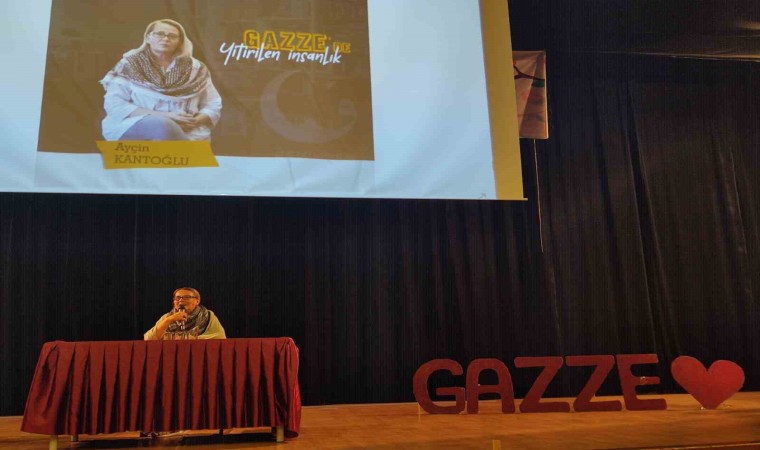 DENİZLİ (İHA) – Denizli’de çevirmen Ayçin Kantoğlu’nun konuşmacı olarak katıldığı “Gazze’de Yitirilen İnsanlık” konulu konferansta, İsrail’in 234 gündür devam eden insanlık dışı katliamları kınandı.