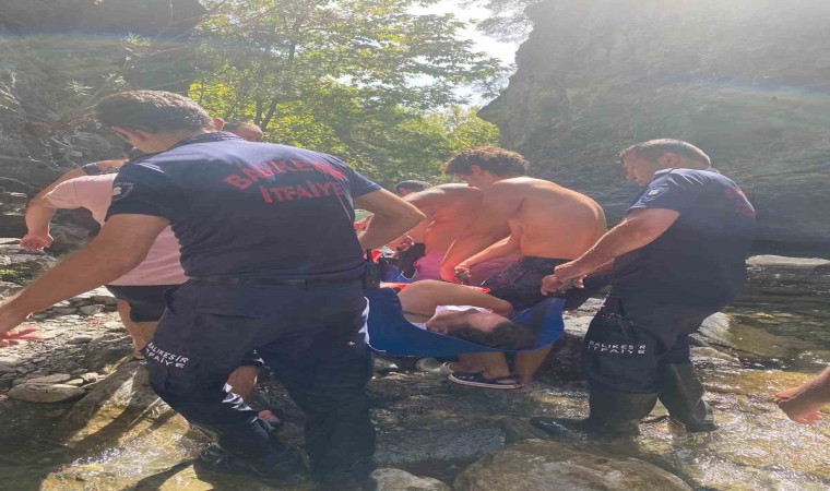 Edinilen bilgiye göre, Balıkesir’in Edremit ilçesi Şahinderesi kanyonunda dengesini kaybederek yüksekten düşen S.Ç.’nin kolu kırıldı ve diz kapağı çıktı. Yaralanan S.Ç. Balıkesir Büyükşehir Belediyesi Edremit itfaiye Grup Amirliği arama kurtarma timi tarafından düştüğü alandan çıkartılarak 112 sağlık ekiplerine teslim edildi. S.Ç. Edremit Devlet Hastanesine sevk edildi. Yaralının sağlık durumunun iyi olduğu öğrenildi.