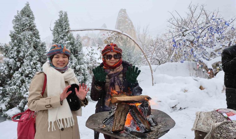 Tüm yurdu etkisi altına alan kar yağışı, Kapadokya’nın eşsiz güzellikteki peribacalarını adeta gelinlik giymiş gibi süsledi. Kapadokya bölgesinde bulunan peribacaları da dron ile görüntülendi, ortaya kartpostallık manzaralar çıktı. Sabah saatlerinde bölgeyi gezmeye çıkan yerli ve yabancı turistler kar sürprizi ile karşılaştı. Yoğun kar yağışına rağmen manzaranın tadını çıkaran turistler hem kar ile oynadı, hem de bol bol fotoğraf çektirdi. Güney Koreli turist Moon Jung Ho’da yaptığı açıklamada, “Kapadokya bölgesi çok güzel. Buralar muhteşem. Dün hava çok güzeldi ve güneşliydi. Kendimi çok şanslı hissediyorum. Kapadokya’yı hem karlı, hem de güneşli görebildim” dedi.