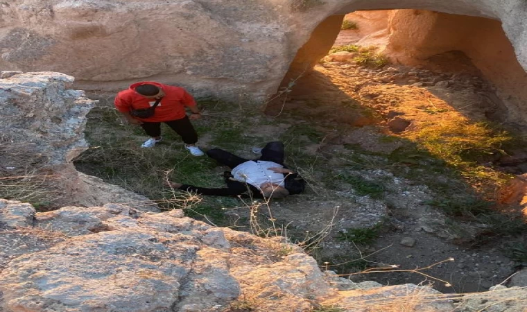 Kapadokya manzarasıyla fotoğraf çekilirken 6 metrelik kayalıktan düştü
