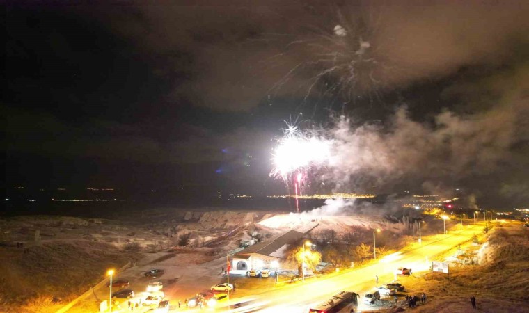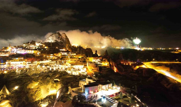 UNESCO Dünya Doğal ve Kültür Mirası Listesi’nde yer alan ve her yıl milyonlarca turist ağırlayan Kapadokya, bu yılbaşında da doldu. Bölgeye akın eden yerli ve yabancı turistler, yeni yıla saatler kala eğlence merkezlerine akın etti. Görsel şölen oluşturan havai fişek gösterileri dron ile görüntülendi.