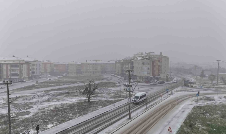 Tekirdağ Kapaklı ilçesinde sabah erken saatlerde başlayan kar yağışı etkisini göstererek ilçeyi beyaza boyadı.