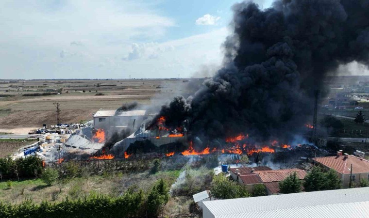 Tekirdağ Kapaklı ilçesi Bahçeağıl Mahallesi’nde kimyasal boya üretimi yapan bir fabrikada çıkan yangın, itfaiye ekiplerinin müdahalesi sırasında dron ile görüntülendi. Yangının fabrikanın büyük bölümünü etkilediği anlar havadan net bir şekilde kaydedildi.
