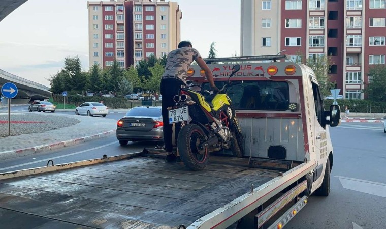 Yapılan uygulamada, ehliyetsiz ve sigortasız motosiklet kullanan şahsa cezai işlem uygulanırken motosiklet çekici yardımıyla otoparka çekildi.