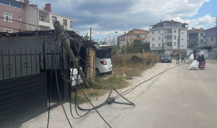 Tekirdağ’ın Kapaklı ilçesinde tahta yüklü kamyon direğin tellerine takıldı. Kamyonun takıldığı 2 direk devrilirken park halindeki otomobil hasar gördü.