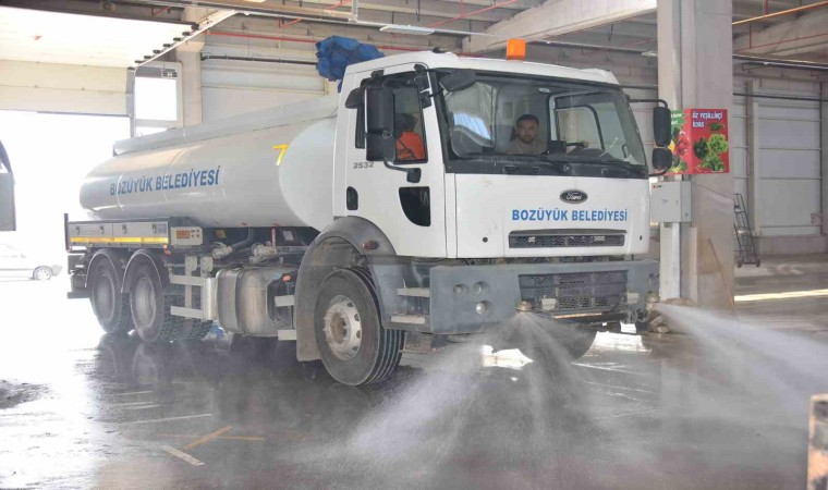 Haftada 2 gün hizmet veren ve Bozüyüklüler tarafından yoğun olarak kullanılan kapalı pazarda vatandaşların gıdaya ulaşımında hijyenik bir ortam sağlamak amacıyla mazgal temizliği ile iç ve dış temizliği düzenli olarak yapılıyor. Pazar içerisinde tezgâhlar kaldırılarak mazgallar temizleniyor, süpürge aracı ile süpürge yapılıyor ve deterjan ile köpürtülerek yıkanan pazarda vatandaşların alışverişlerini hijyenik bir ortamda yapmaları sağlanıyor. Haftalık olarak yapılan geniş temizliklerin yanı sıra kapalı pazardaki ekipler pazarın açık olduğu günlerde de rutin çevre temizliklerini sürdürüyor.