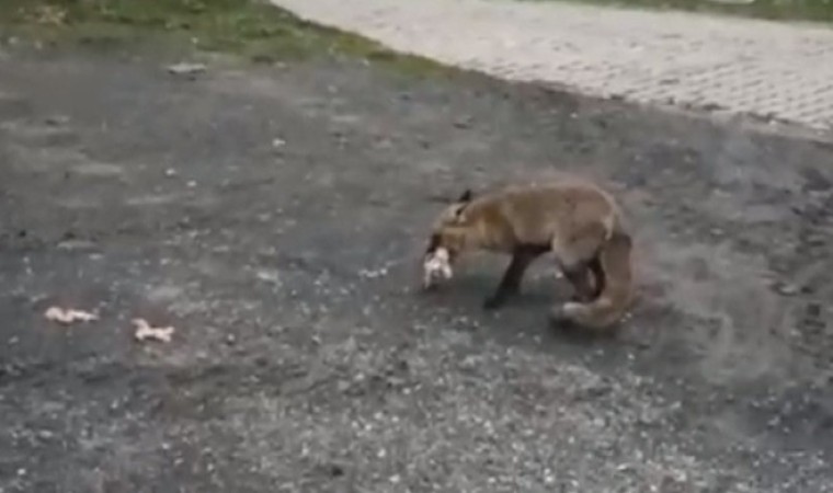 Kendisine verilen tavuk parçalarını alan tilki ise gözden kayboldu. O anlar ise cep telefonu ile görüntülendi.