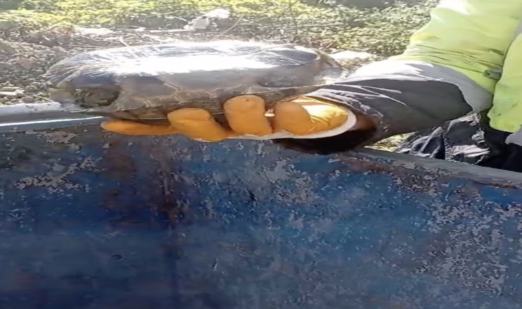 Kastamonu’nun Cide ilçesinde çöp konteynlerine atılan kaplumbağa temizlik işçileri tarafından kurtarılarak doğal yaşam ortamına bırakıldı.