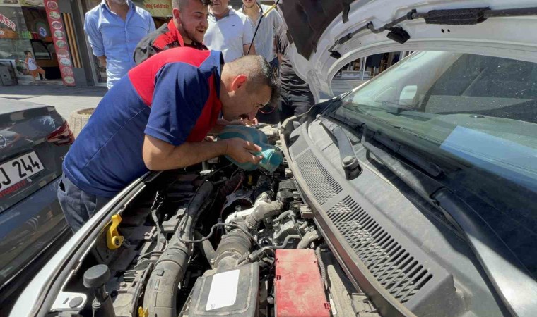 Saat 08.00’de dükkanı açtığını ve kendisine arabanın kaputuna kedi girdiğinin iletildiğini söyleyen Öklav, "Uğraştık çıkartamadık. Son çare itfaiyeyi çağırdık. Sağ olsun bir şekilde çıkardılar. Kedi şu an şoke oldu, neye uğradığına şaşırmış. Kediye duş aldırdık, süt ikram ettik. Başka ne yapabiliriz. Gerçekten havalar çok sıcak. Yavru kediler nereye girdikleri belli olmuyor" diye konuştu.