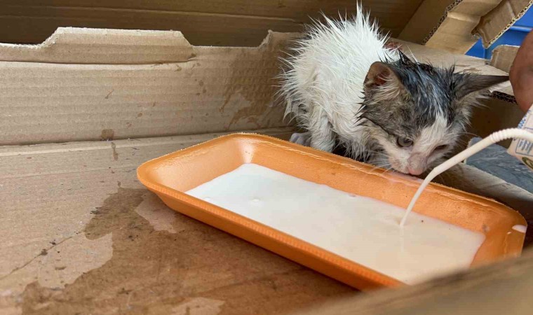 Şırnak’ın Silopi ilçesinde park halindeki bir otomobilin kaputuna sıkışan yavru kedi itfaiye ekiplerince kurtarıldı. Kurtarıldıktan sonra yıkanan kedi sütle de beslendi.
