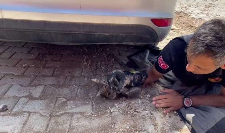 Erbaa ilçesinde yaşayan Mustafa Ersan’a ait aracın kaputuna yavru kedi girdi. Durumu fark eden Ersan, itfaiye ekiplerine haber verdi. İhbar üzerine olay yerine Erbaa Belediyesi itfaiye ekipleri sevk edildi. Araç içerisine sıkışan kedinin yerini tespit eden ekipler kediyi sıkıştığı yerden kurtardı. Kediyi çıkaran itfaiye ekipleri su içirdikten sonra yüzünü yıkadı. Kurtarılan kedi doğaya salındı.