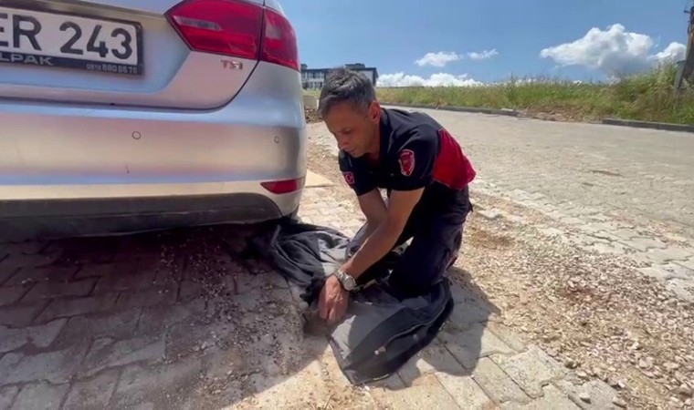 Tokat’ta araç kaputuna sıkışan kediyi itfaiye ekipleri kurtardı. Yüzü yıkanılan kedi doğaya salındı.