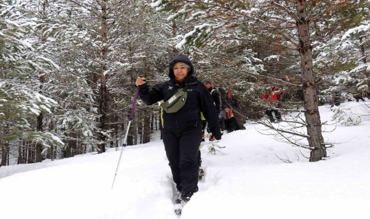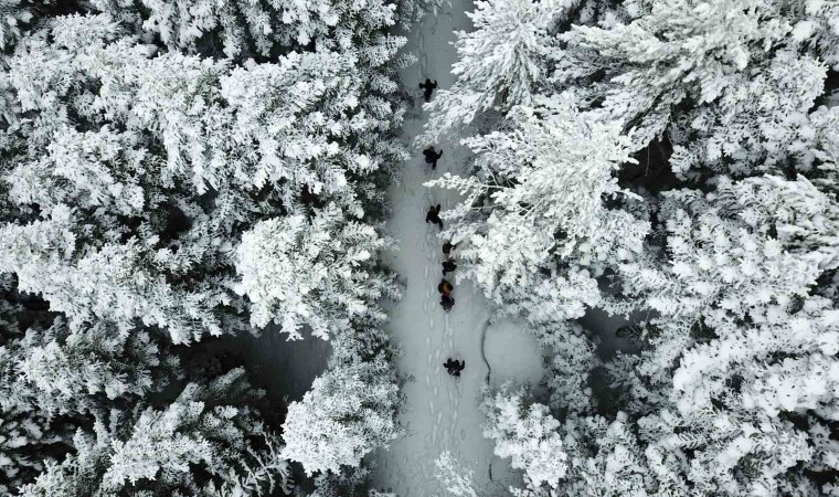 Etkinlikte karlar altında saklı patikalarda ilerlerken doğanın kışlık örtüsünün oluşturduğu büyüleyici bir tablo ile karşılaşan sporcular, karla kaplı ağaçların oluşturduğu tünellerden geçerek ilerledi.