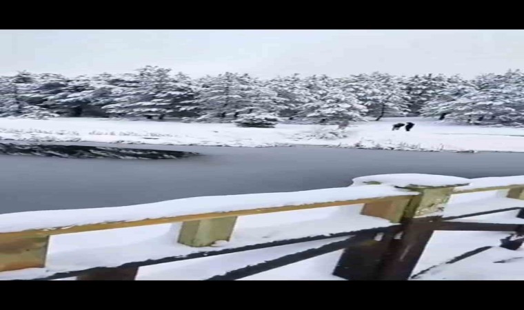 Afyonkarahisar’da etkili olan kar yağışı sonrası kent beyaza büründü. Yağışla birlikte özellikle yüksek kesimlerde kar kalınlığı yer yer yarım metreye kadar ulaştı. Yağış sonrası bazı yerlerde ise kar altındaki doğa eşsiz görüntülerde oluşturdu. Sandıklı Akdağ Tabiat Parkı’nda kar yağışı sonrası ortaya çıkan manzara ise görenleri kendisine hayran bıraktı. Kar altındaki ağaç ve göl seyrine doyumsuz bir manzara oluşturdu. Ailesi ile birlikte parka giden küçük bir çocuğun cep telefonu ile çektiği görüntülerde ki konuşmaları ise duyanların içini ısıttı. Sevimliliği ile dikkat çeken çocuğun görüntülerde üşüdüğünü söyleyerek kar manzarasını anlatması ve yürürken ezilen karın sesinden bahsetmesi duyanları gülümsetti.