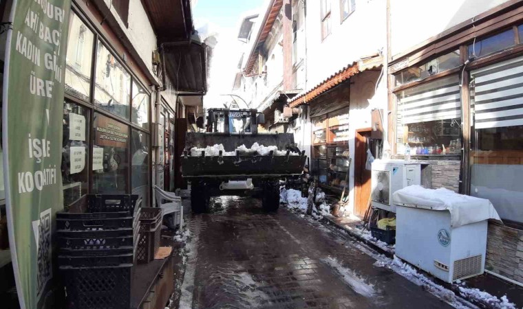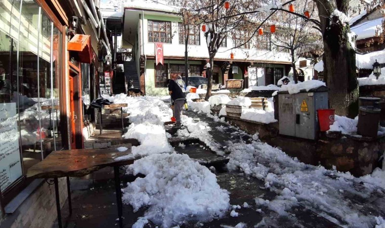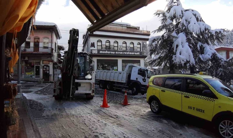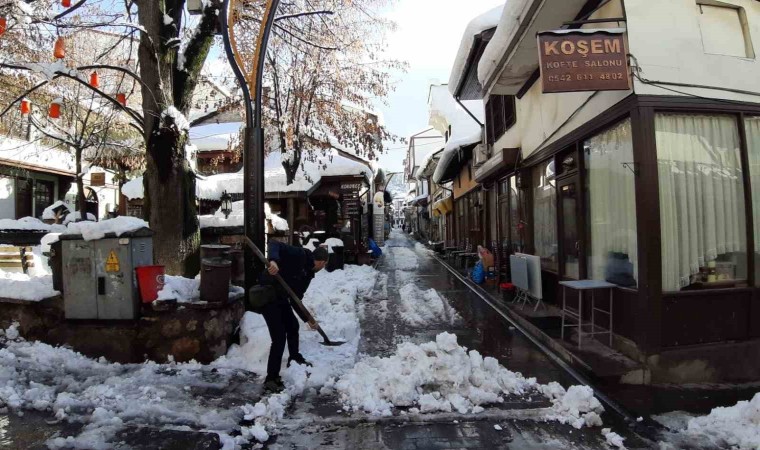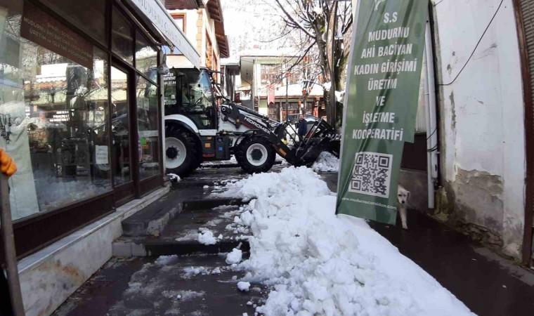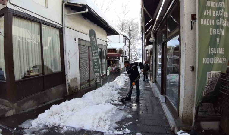 Bolu’nun tarihi ilçesi Mudurnu’da 3 gün boyunca etkili olan kar yağışı sonrasında sokaklarda temizlik başladı. İlçe 40 santimetreyi aşan kar kalınlığı nedeniyle esnaf zor anlar yaşadı.