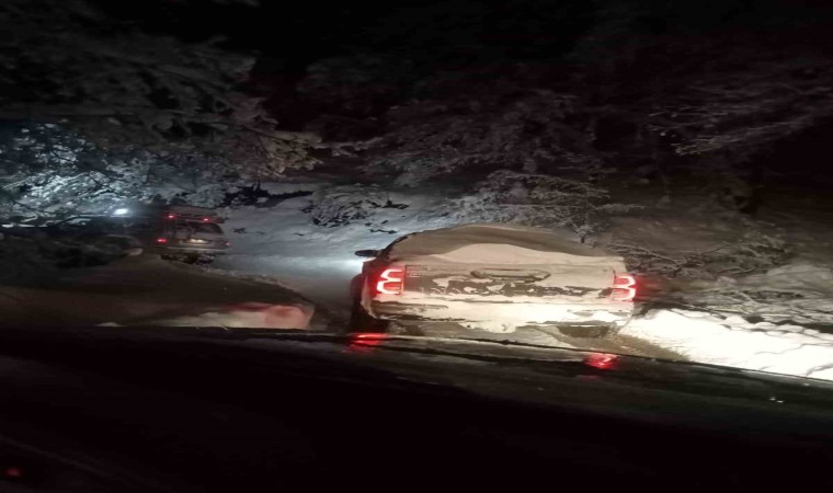 Bolu’da 2 gündür aralıksız etkili olan kar yağışı hayatı olumsuz etkiledi. Kar kalınlığının 1 buçuk metreyi bulduğu Mudurnu ilçesine bağlı Ortaköy köyü mevkiindeki Pürenli Yaylası’nda yollar kapandı. 5 aracın güzergah üzerinde hareket edememesi nedeniyle araçlar içerisinde bulunan 12 kişi mahsur kaldı. İhbar üzerine Mudurnu İlçe Özel İdare ekipleri sevk edildi. Ekipler, iş makinesiyle yolu açtı. Mahsur kalan kişiler yolun açılmasıyla kurtarıldı.
