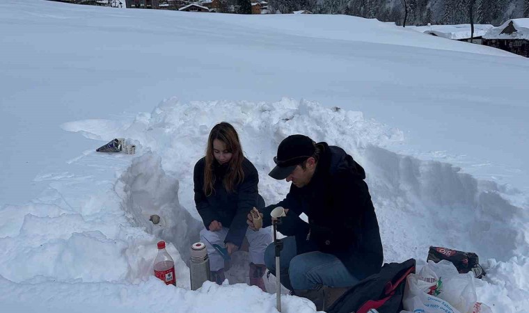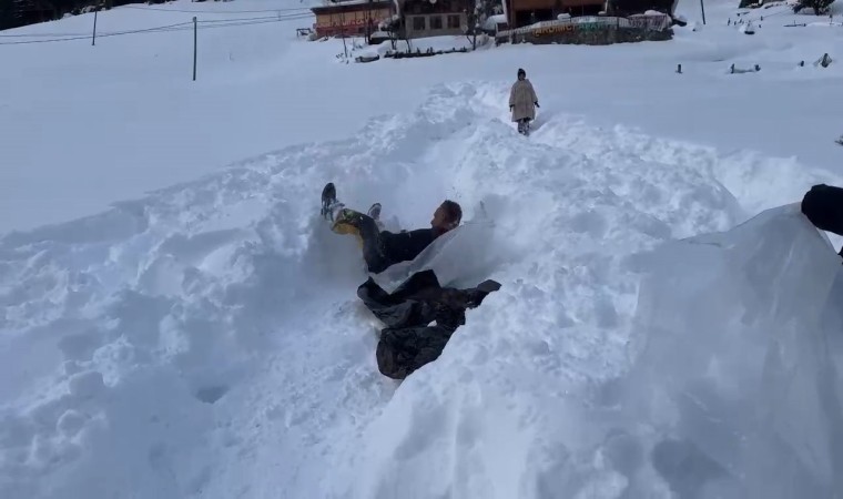 Hafta sonunu eğlence ile değerlendirmek isteyen Rizeliler kar kalınlığı 1 metreyi bulan Ayder Yaylası’na akın etti.