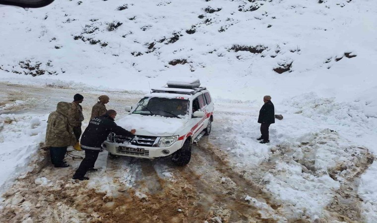 Siirt’in Şirvan ilçesinde kar nedeniyle yolu kapanan köyde mahsur kalan 70 yaşındaki kadın hasta, ekiplerin 2 saatlik çalışmasıyla hastaneye ulaştırıldı.