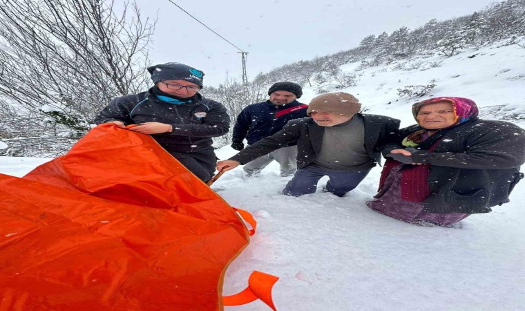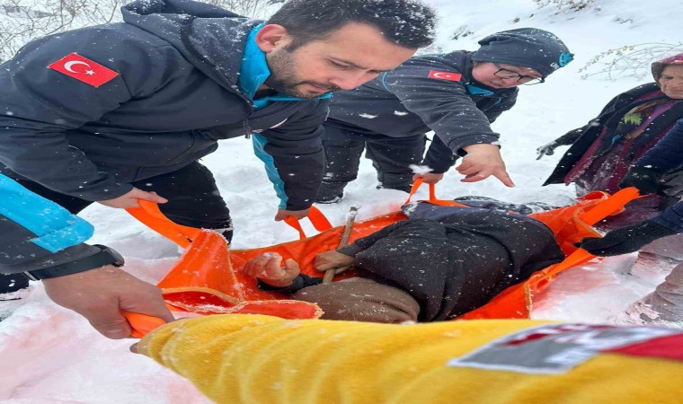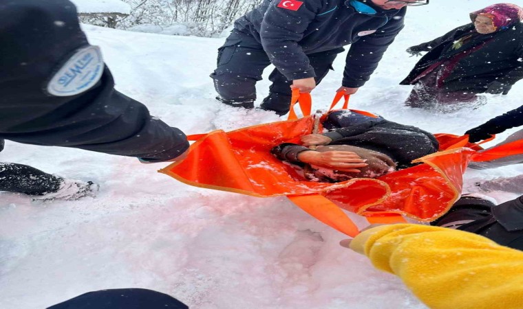 İlk müdahalesi evinde yapılan hasta, ardından sedye ile paletli ambulansa kadar taşındı. Hasta daha sonra hastaneye götürüldü.