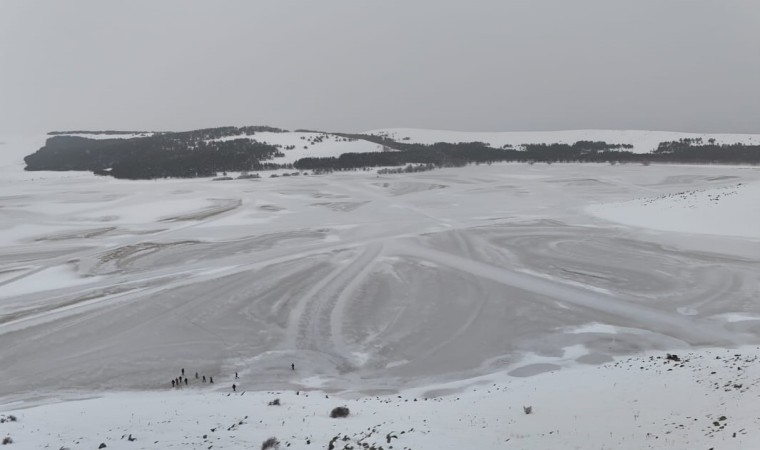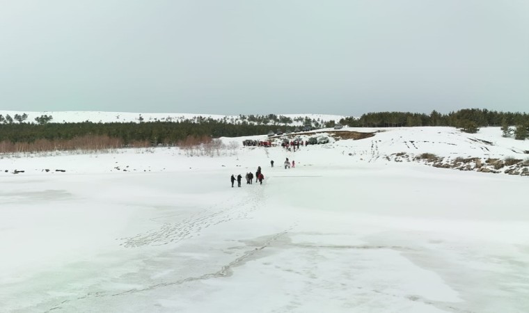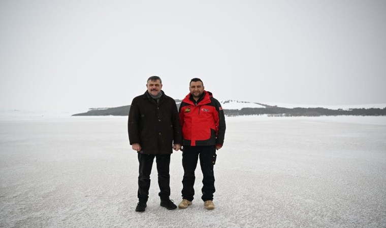 Erzurum Valisi Mustafa Çiftçi, Erzurum Macera Off-Road Doğa Sporları Kulübü üyeleri ile buz tutmuş Köşk Göleti’nde yürüyüş yaptı.